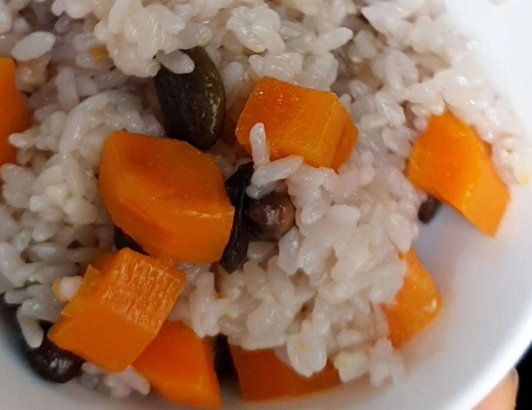검은콩과 당근 2가지를 넣어 지은 밥을