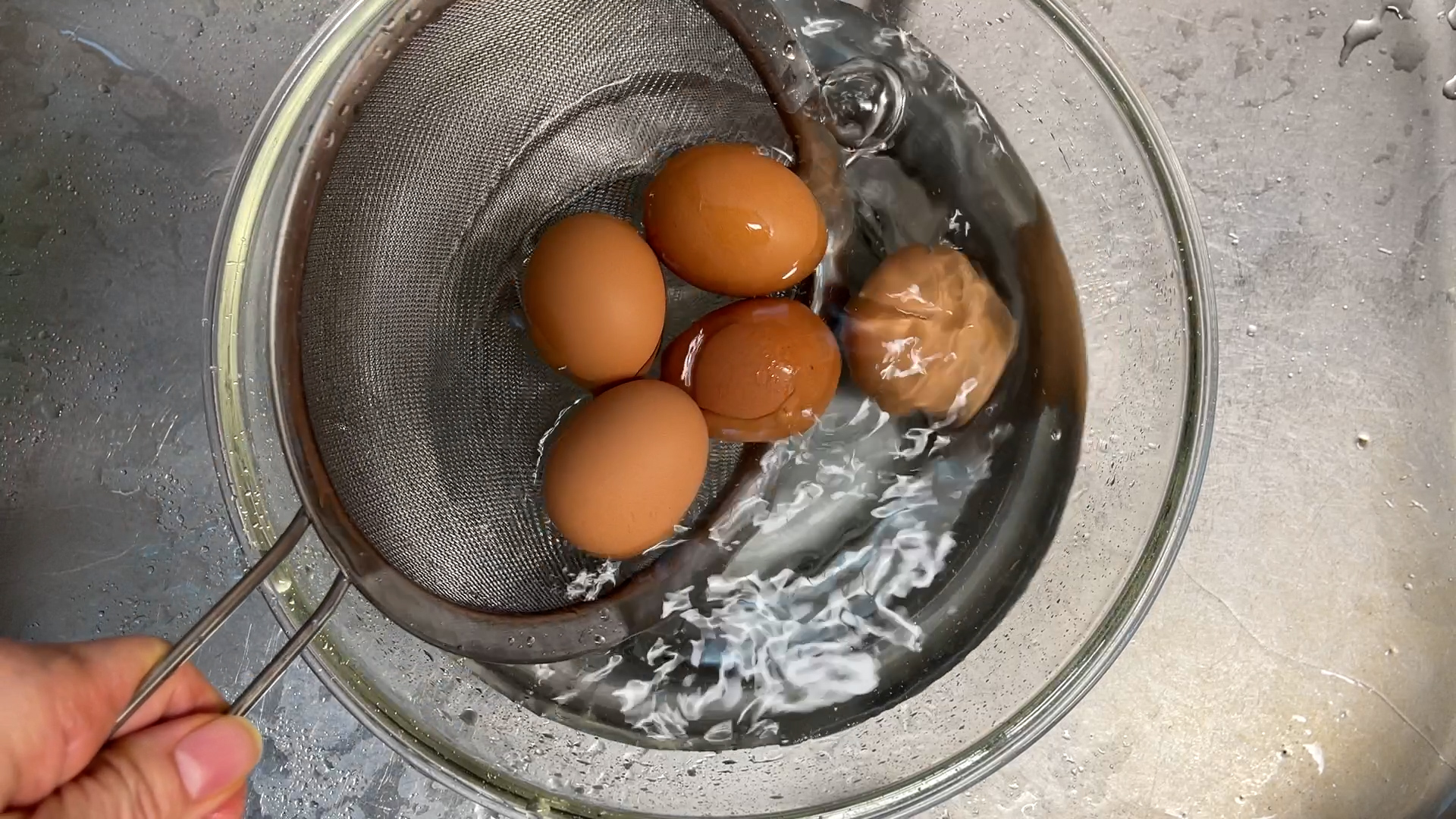 | 4. 계란을 건져서 찬물에 계란을 풍덩 넣어 식혀 줍니다. | ![]() |