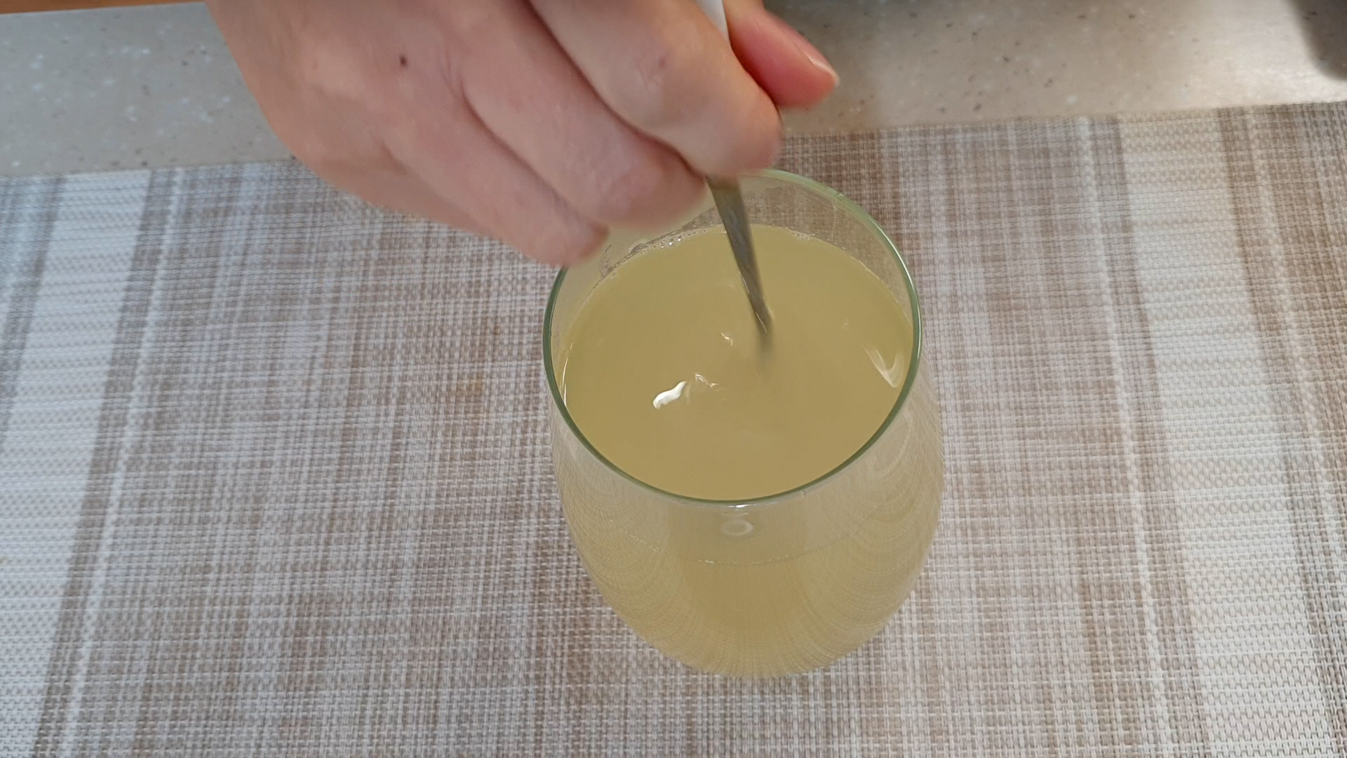 반으로 잘라서 스퀴즈, 짜서 레몬즙을 낸 다음