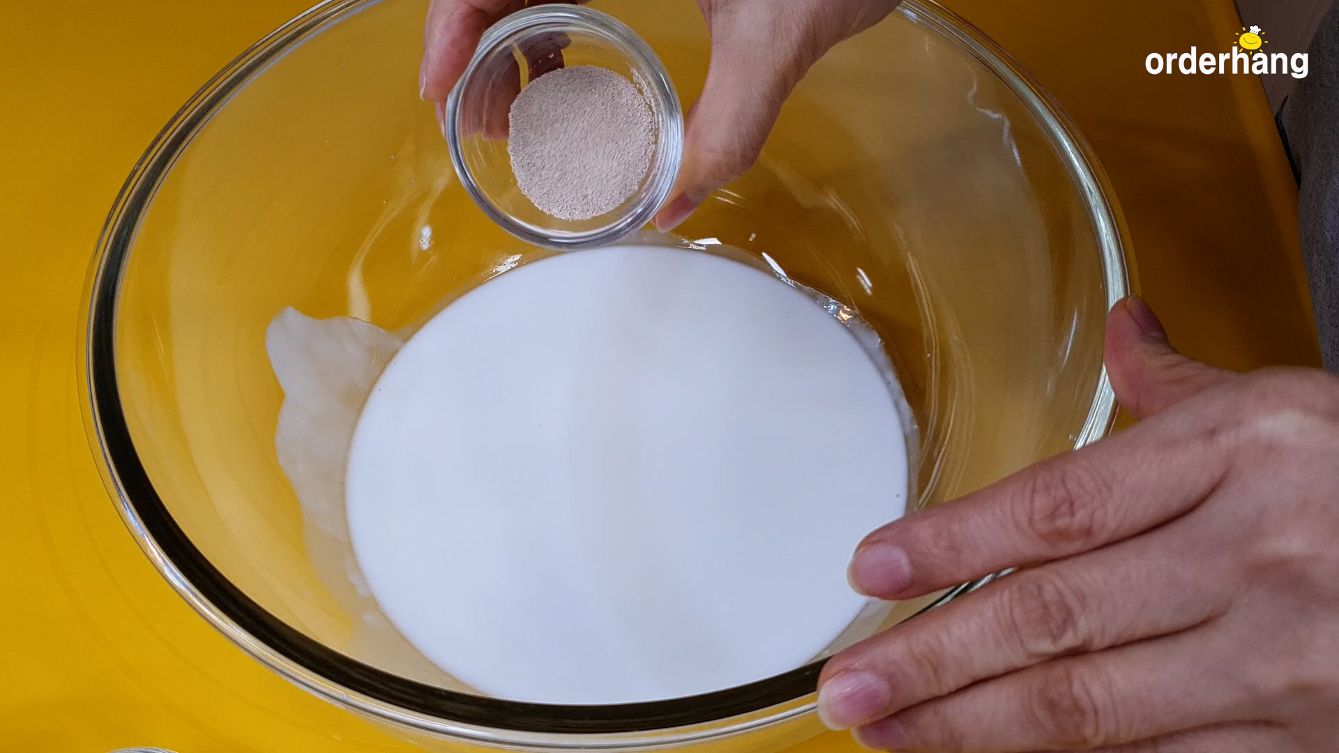 1.먼저 생크림과 우유에 드라이 이스트 넣고 저어 준다.