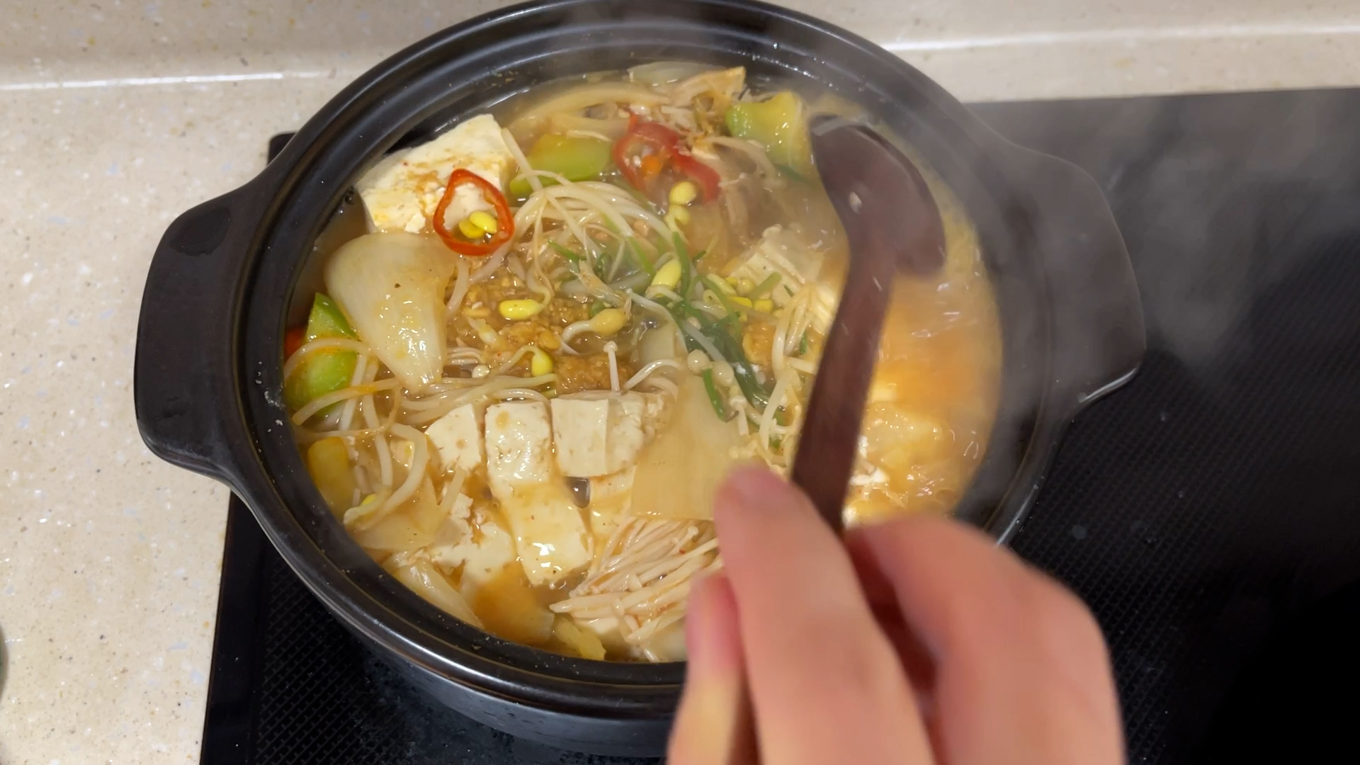 맛있는 된장찌개가 완성된다.