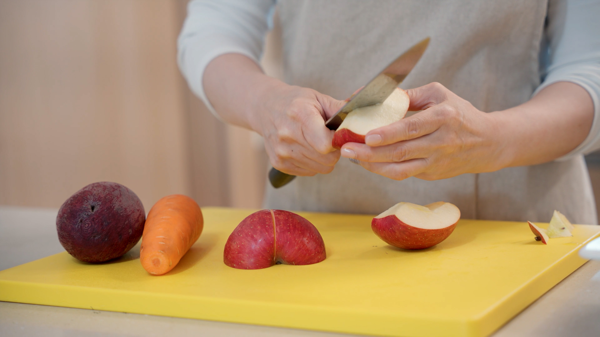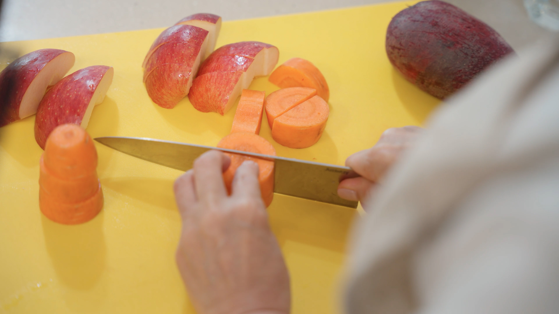 1.사과, 비트, 당근을 깨끗이 세척하여 사과는 씨를 제거한다.