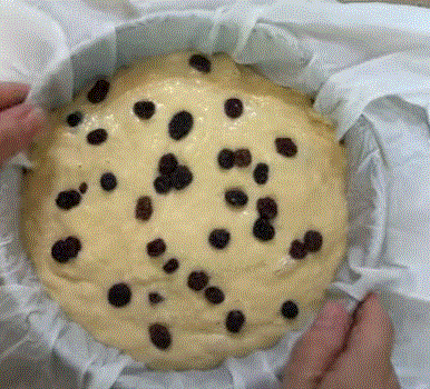 5. 반죽의 기포를 빼고 건포도나 옥수수, 견과류 등 넣어 준다.