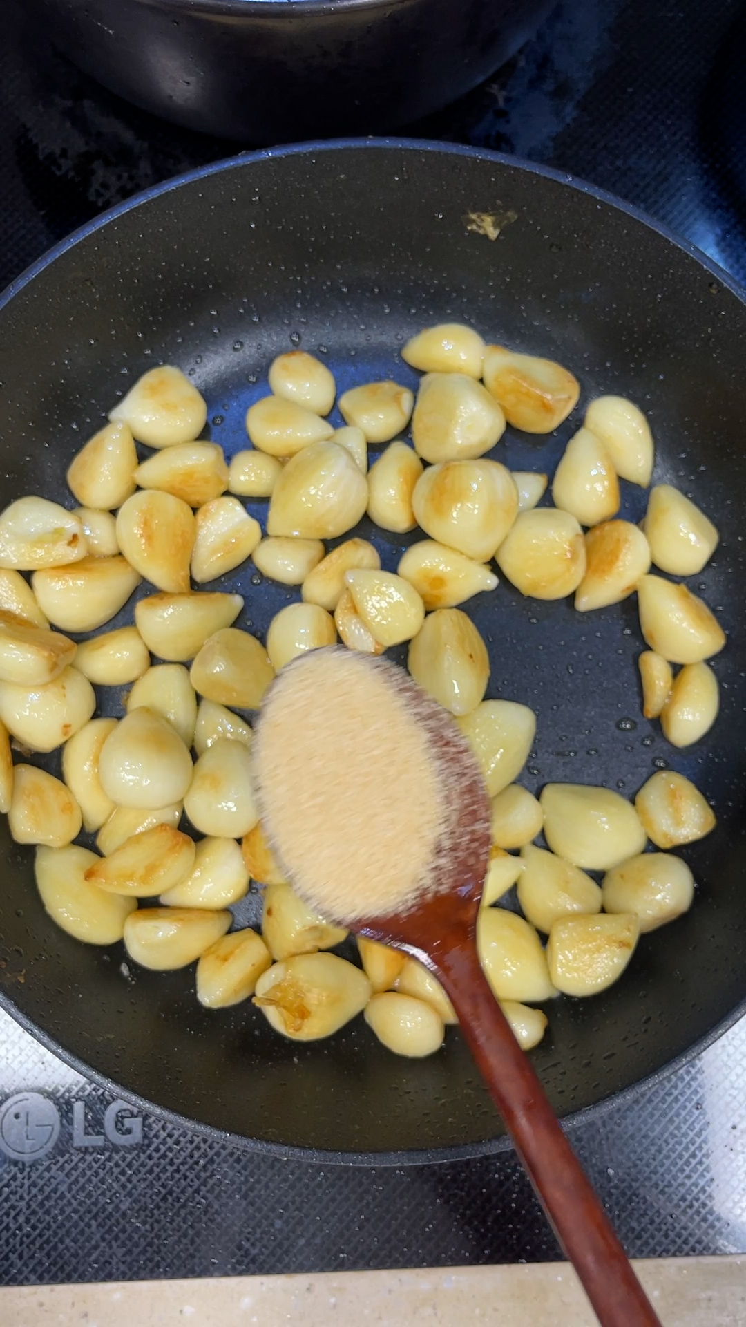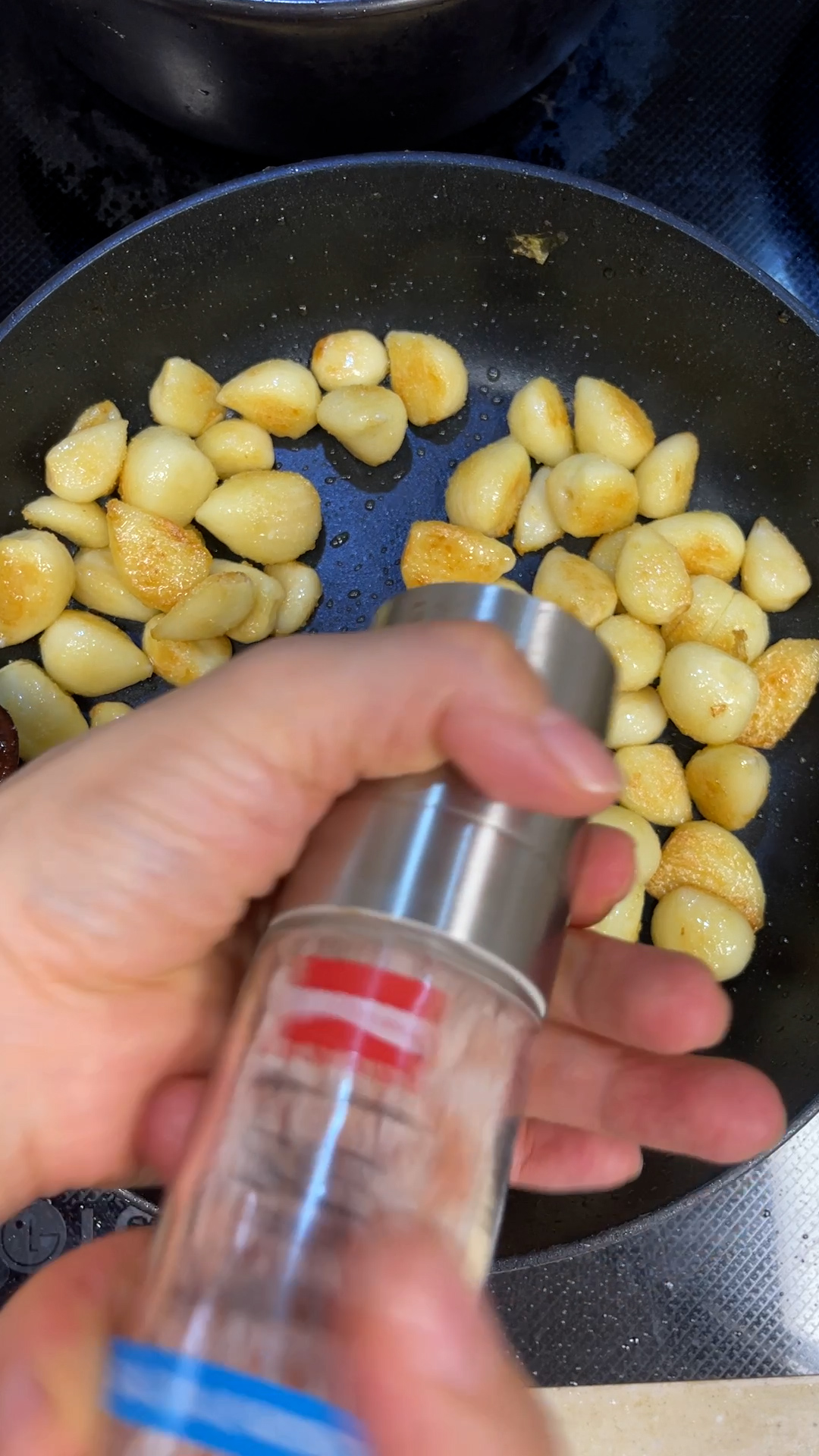프라이팬에 마늘 구워서 꼭 드셔보세요. 알싸한 맛은 사라지고 아삭한 식감과 살짝 가미된 단짠이 참 매력적이에요!!