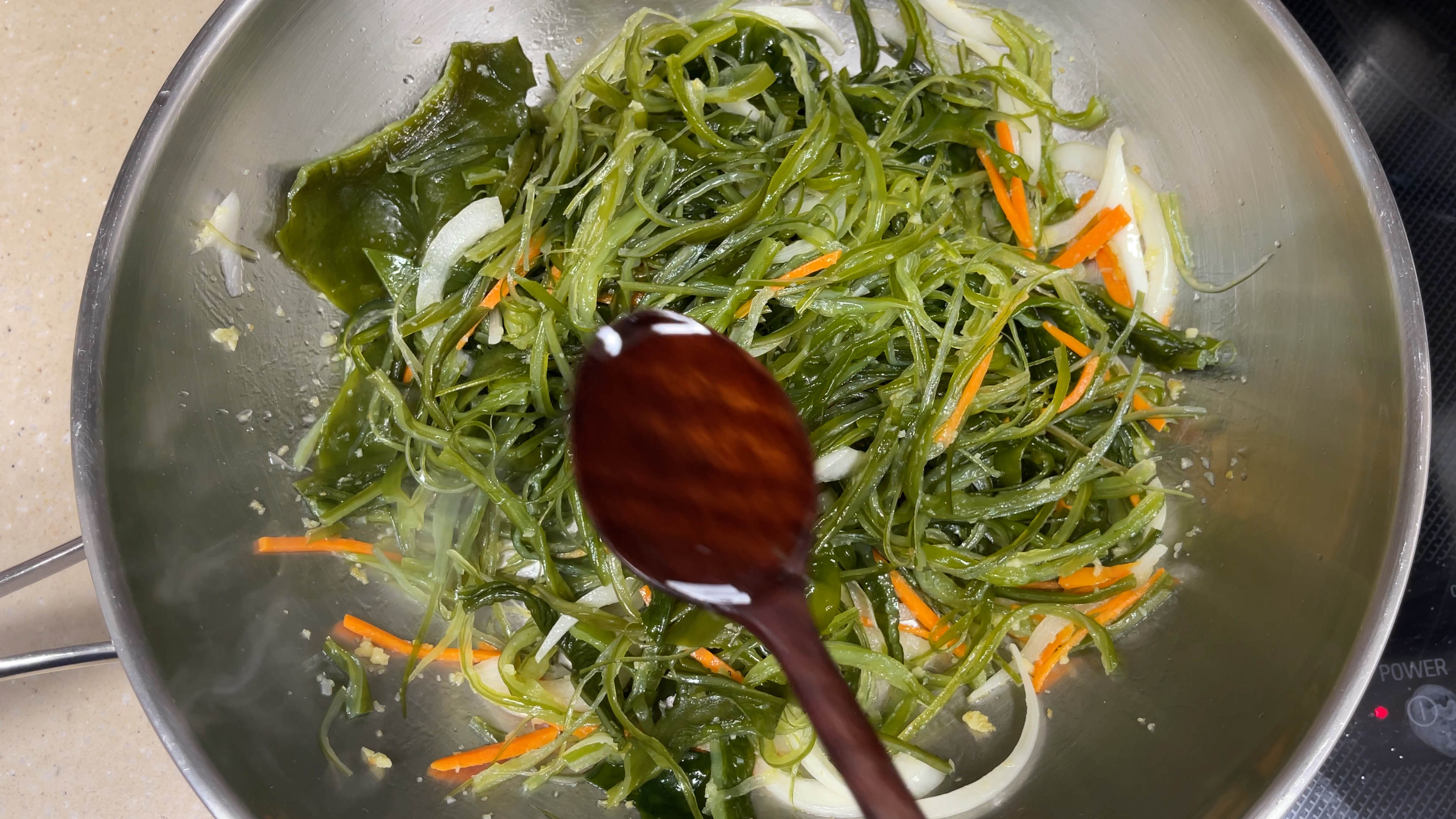 오늘은 뼈 건강에 도움이 되는 미역줄기로 볶음을 만들었어요.