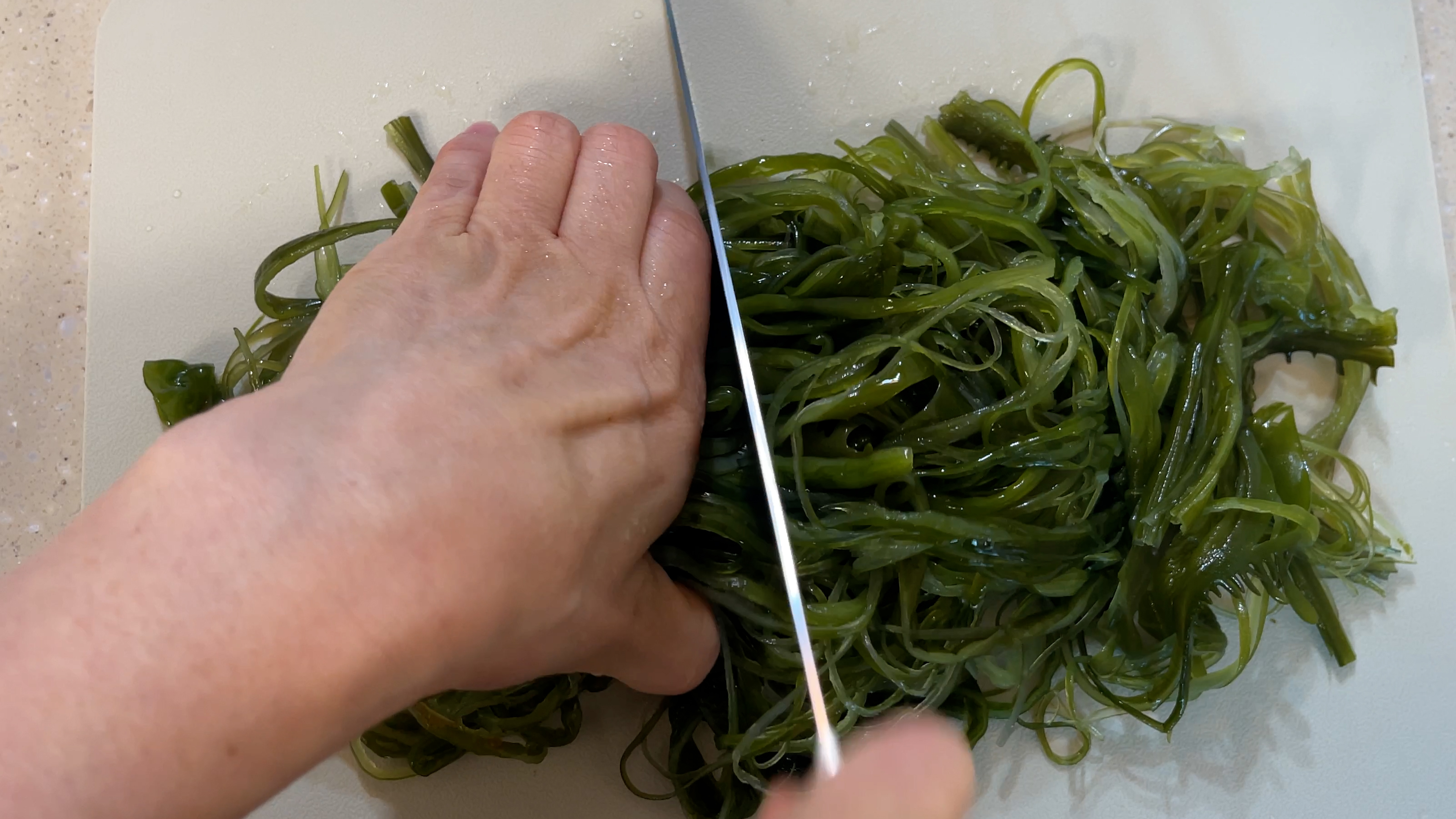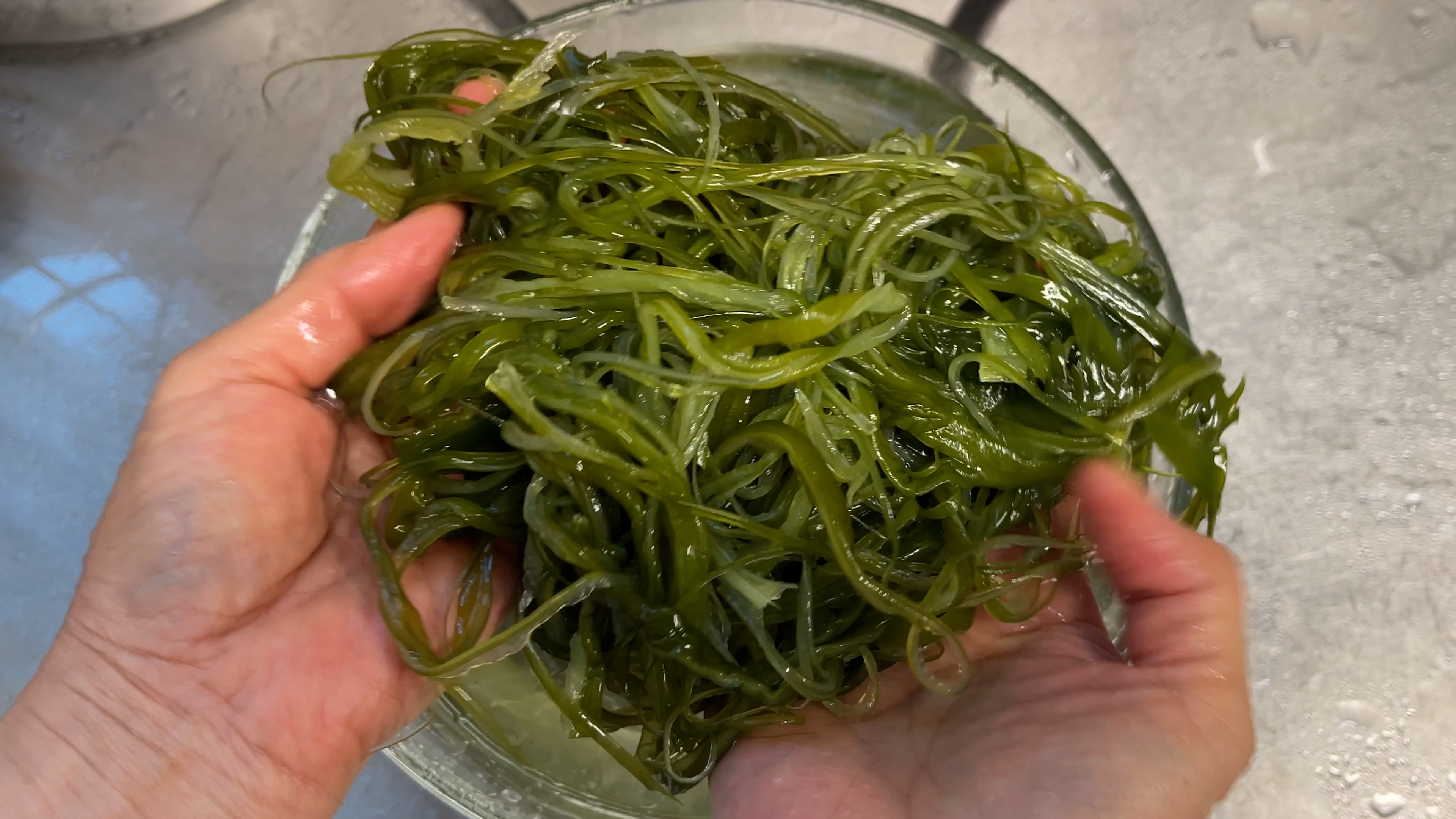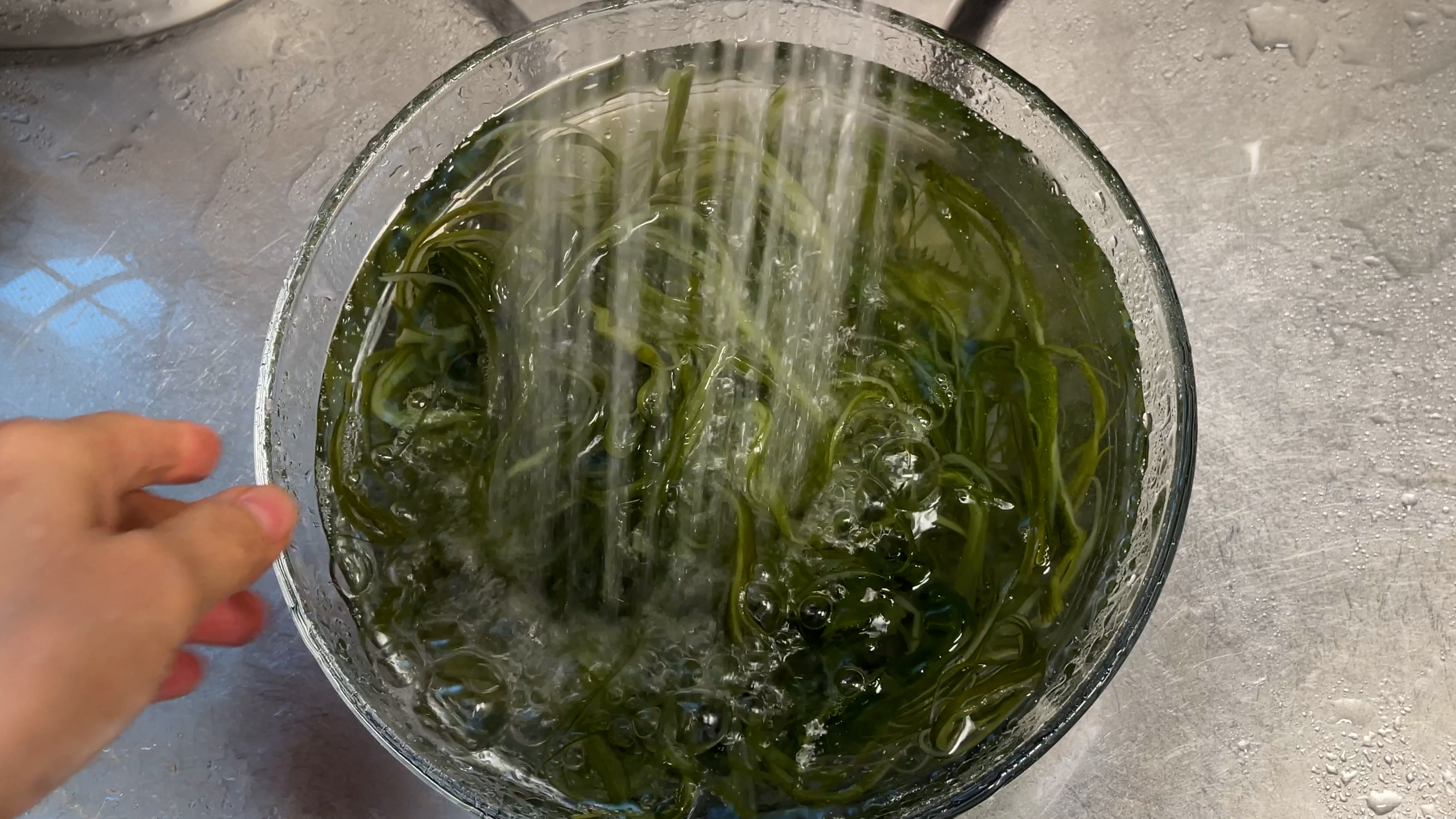 1. 염장된 미역줄기 소금을 찬물에 2~3회 헹궈 제거한다.