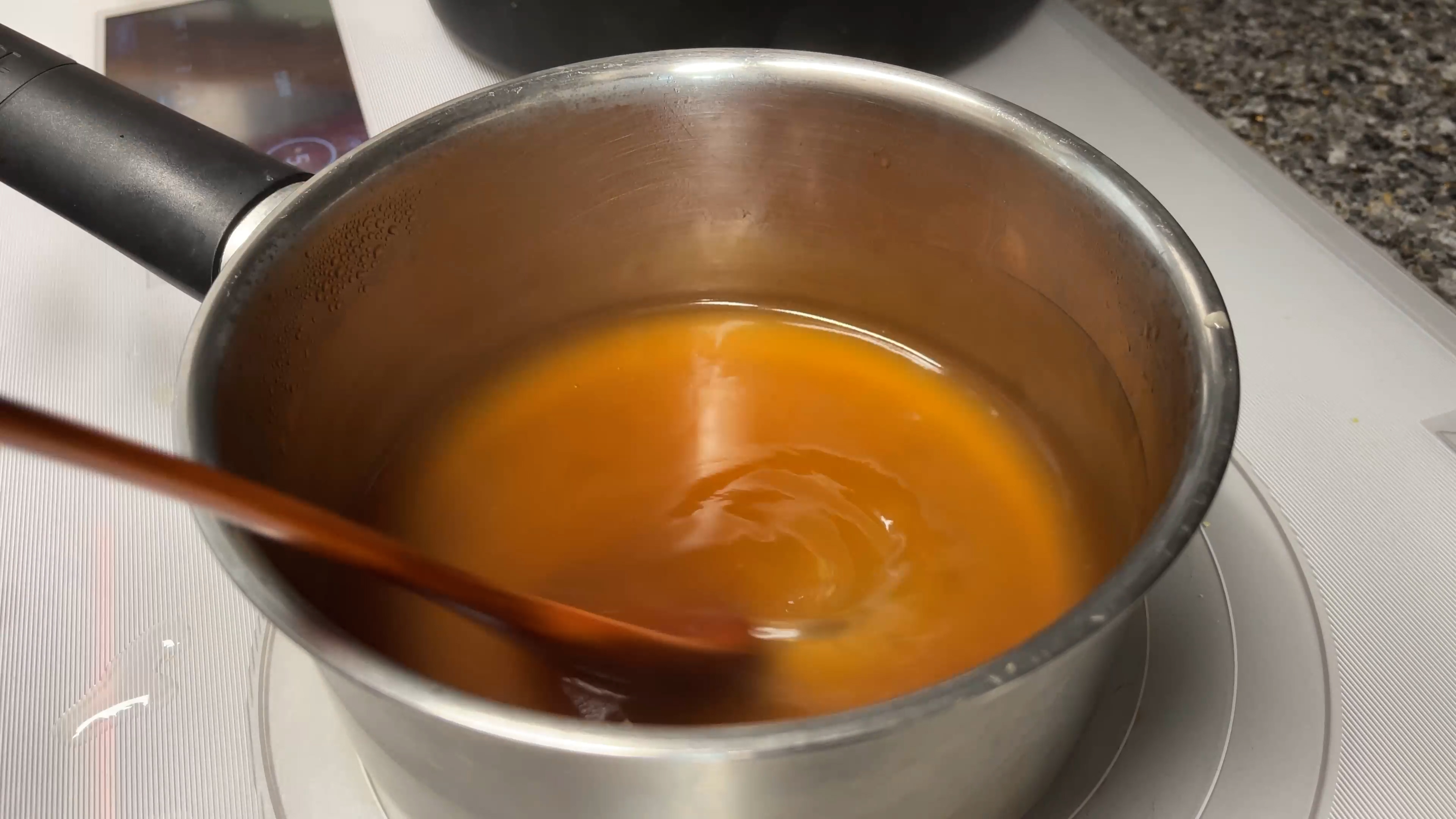 6. 소스를 끓이다가 끓어오르면 전분물 만들어 저으면서 넣어준다.