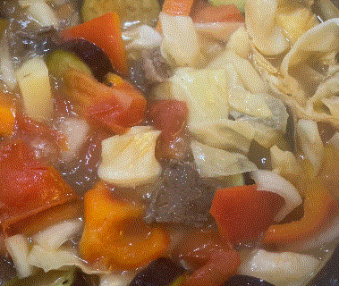 2.당근, 양배추, 셀러리, 양파, 감자등 먹기 좋은 크기로 썰어서 냄비에 넣어 끓인다.