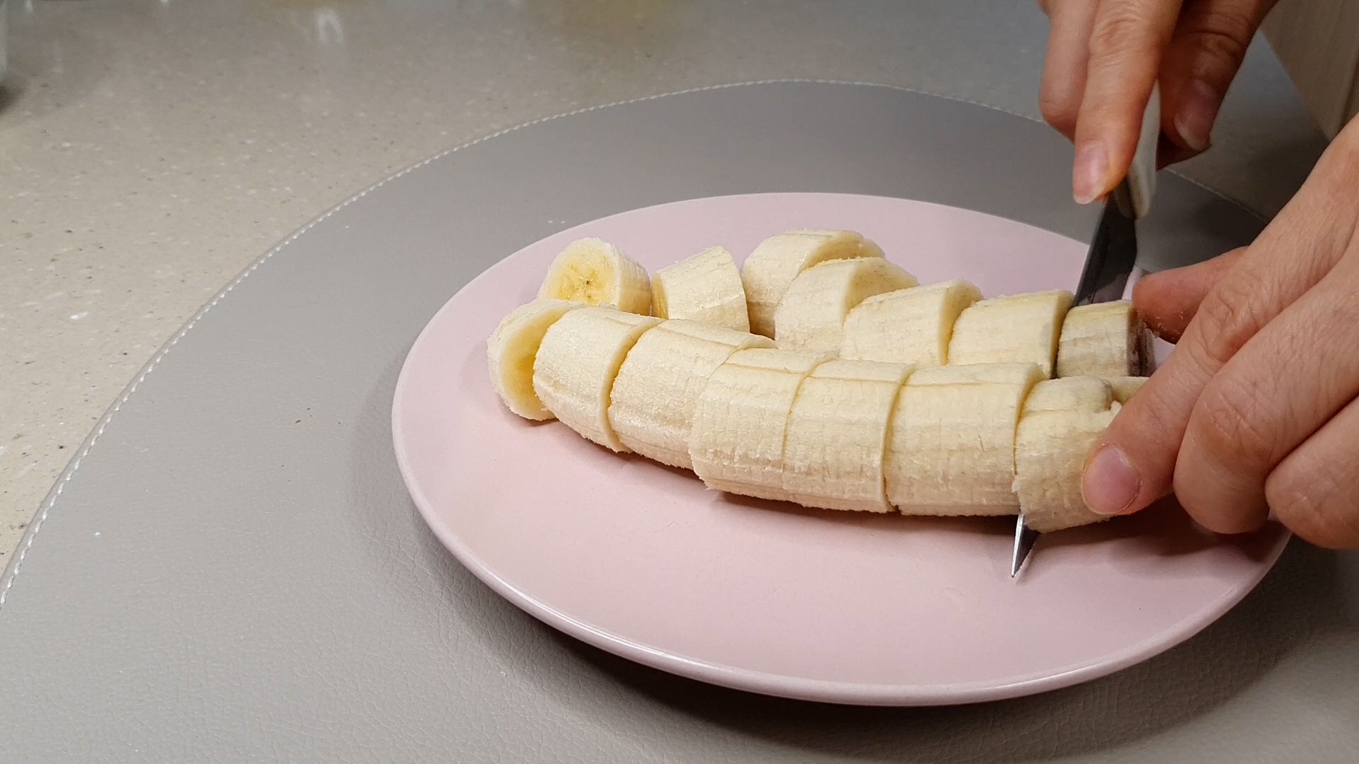 1. 바나나 껍질을 벗겨 썰어 준다.