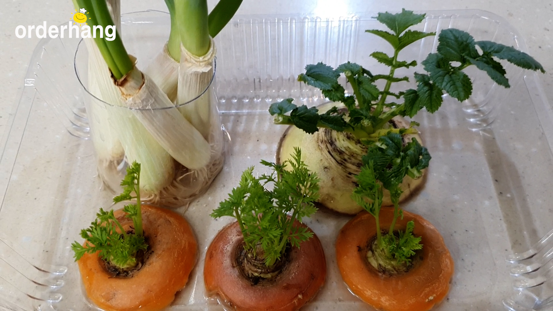 물만 갈아주면 쑥쑥자라는 채소 끄트머리들입니다.