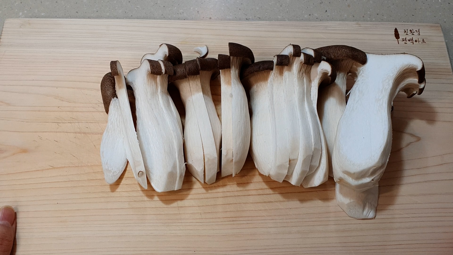1. 새송이버섯을 도톰하게 잘라 주세요.