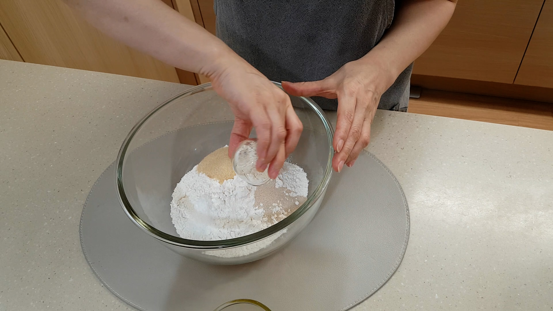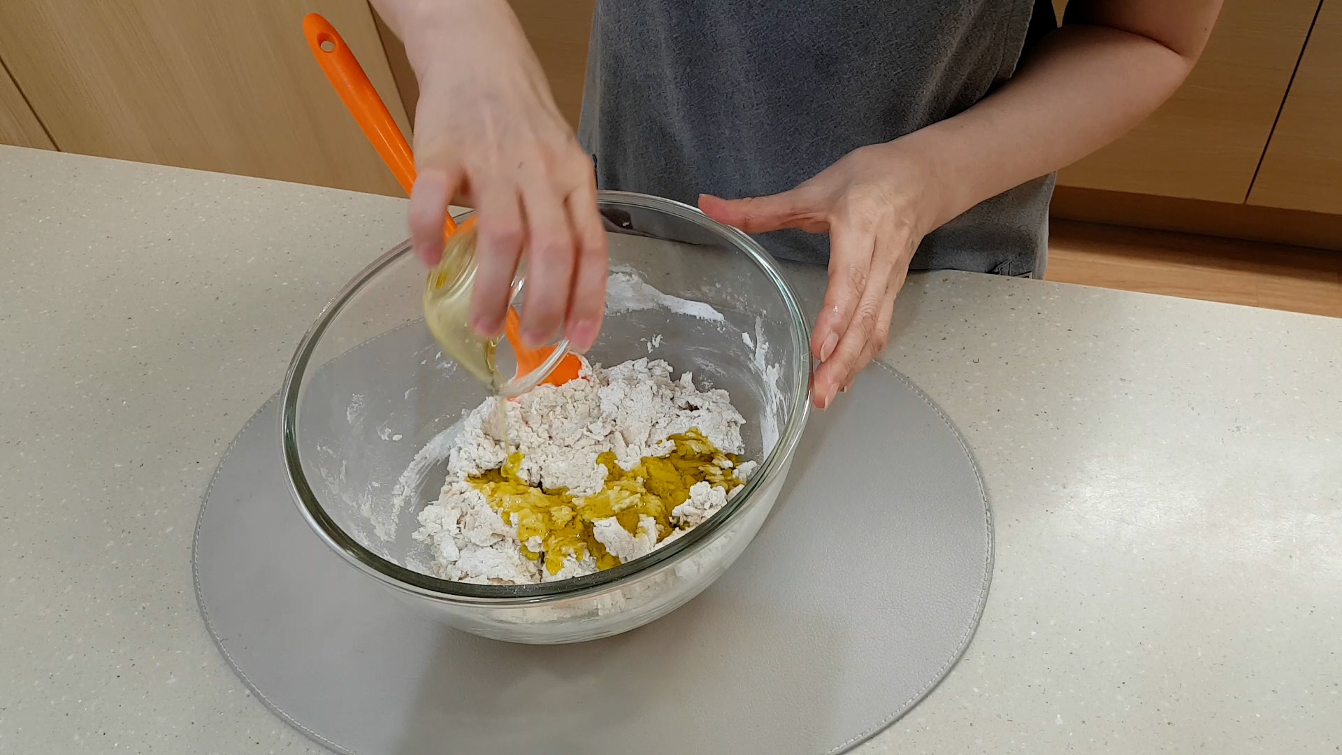 2.올리브 오일을 마지막에 넣고 손반죽 몇 번 한다.