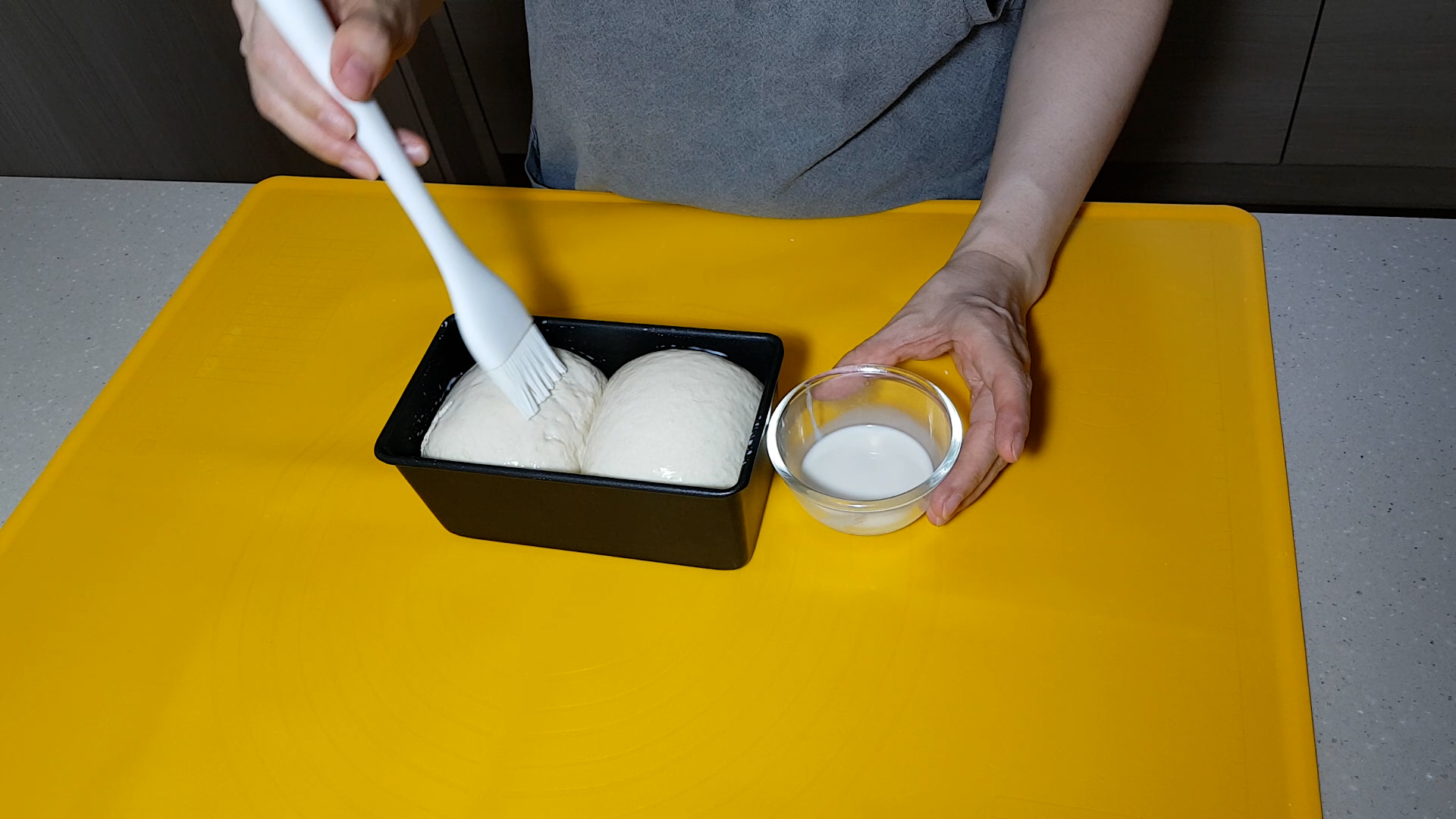 6.두유를 발라준다.