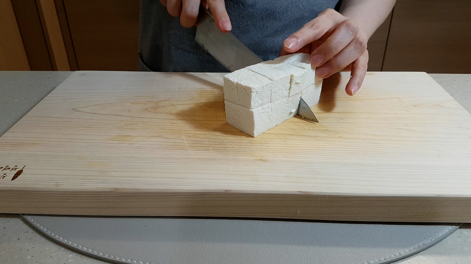 3. 두부 먹기 좋은 크기로 잘라 준다.(생으로 먹어도 좋고 기름에 부쳐 먹어도 맛있다)