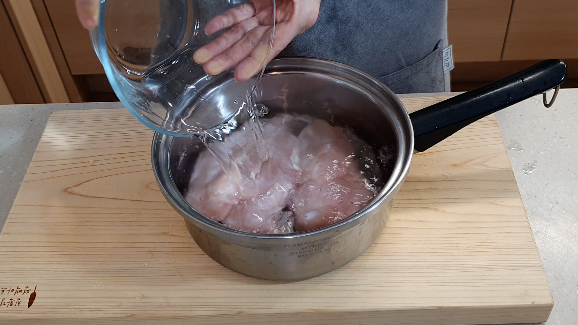 1.냄비에 닭가슴살 넣고 충분한 물을 부어 삶아 준다. 끓어오르면 중불에서 10분간 더 삶아 준다.