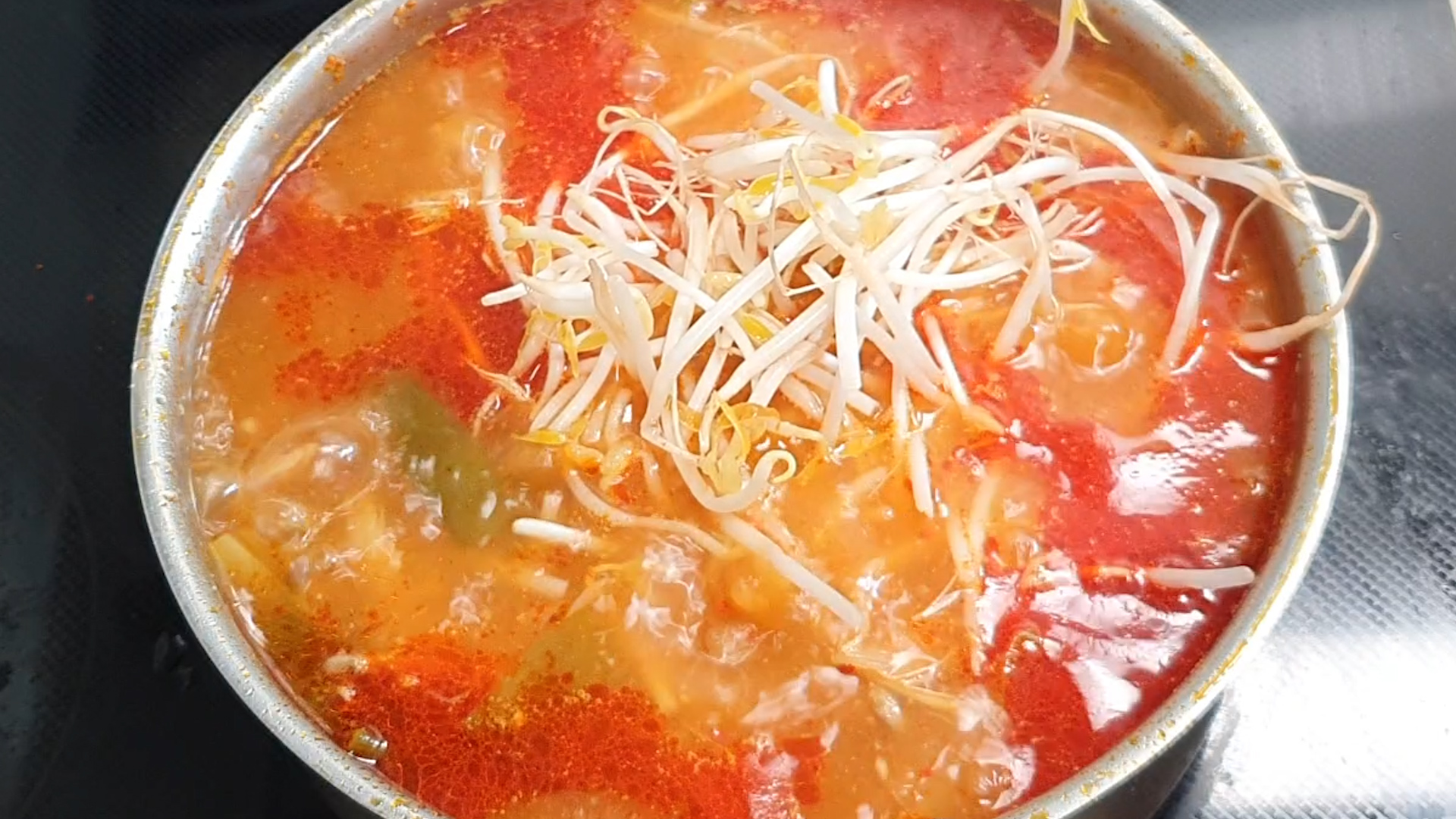 7.끓기 시작하면 중약불에서 20분 정도 끓인 후 먹기 1분전 숙주 넣어 아삭한 식감을 더한다.