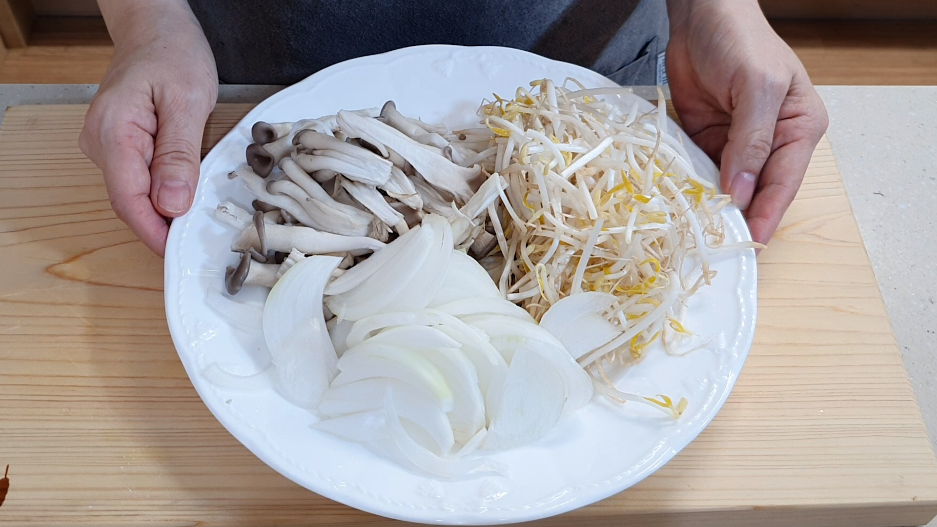 2.대파, 느타리버섯, 양파, 숙주를 손질하여 준비한다.