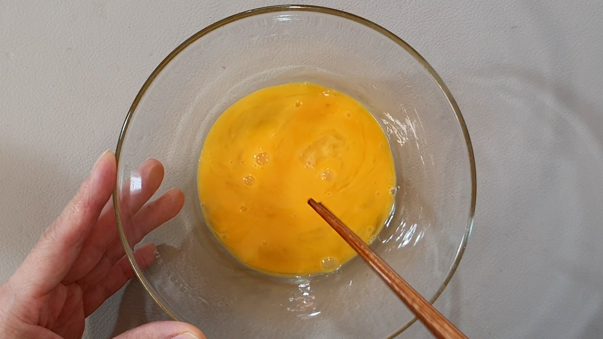 1.계란에 소금이나 설탕을 기호에 따라 넣고 푼다.
