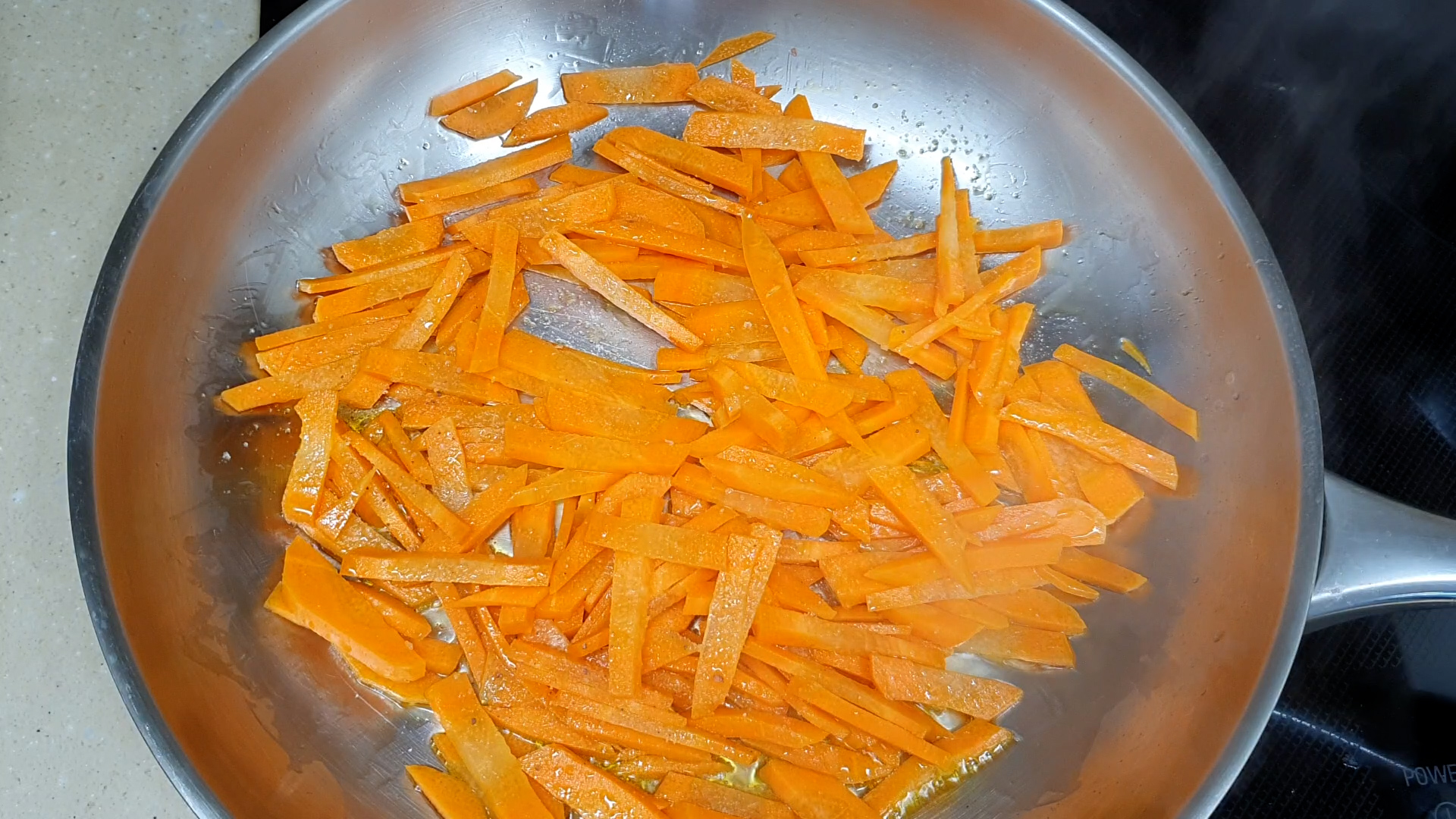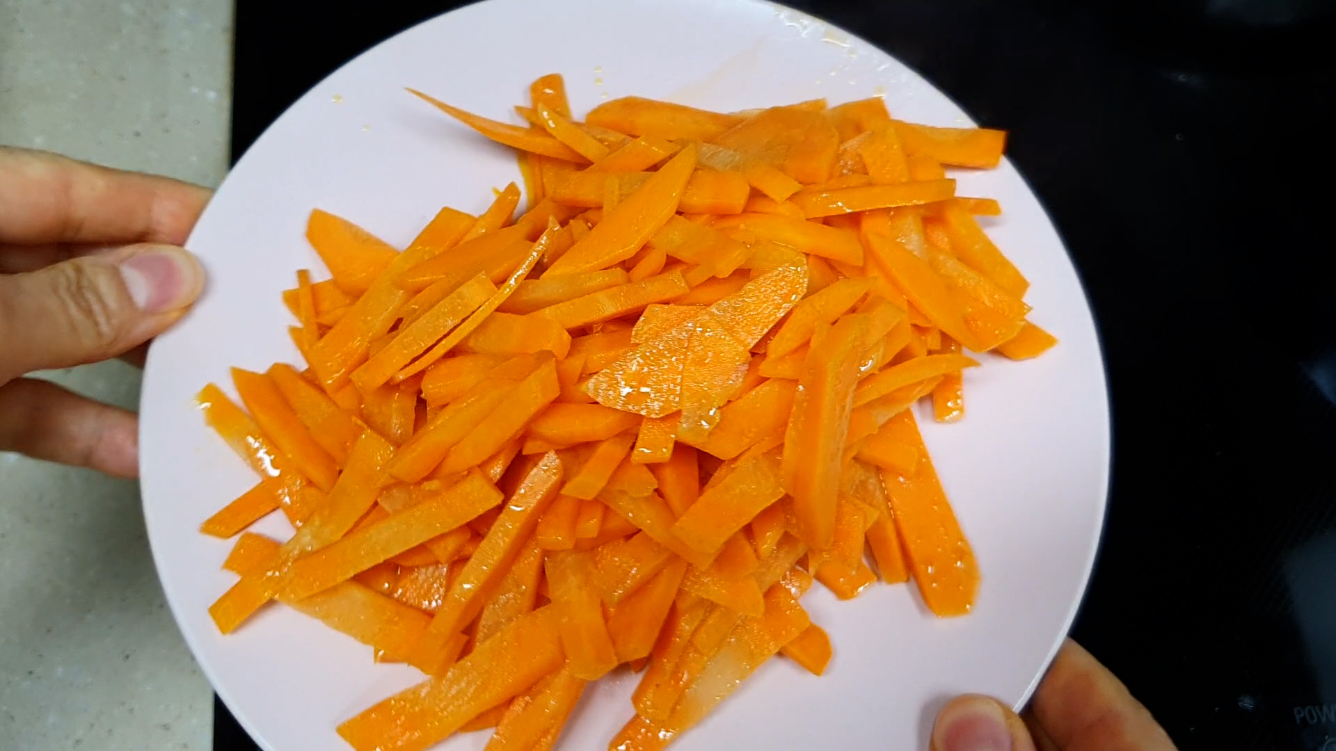 3. 당근을 채썰거나 카터그에 다져서 기름에 살짝 볶아준다.