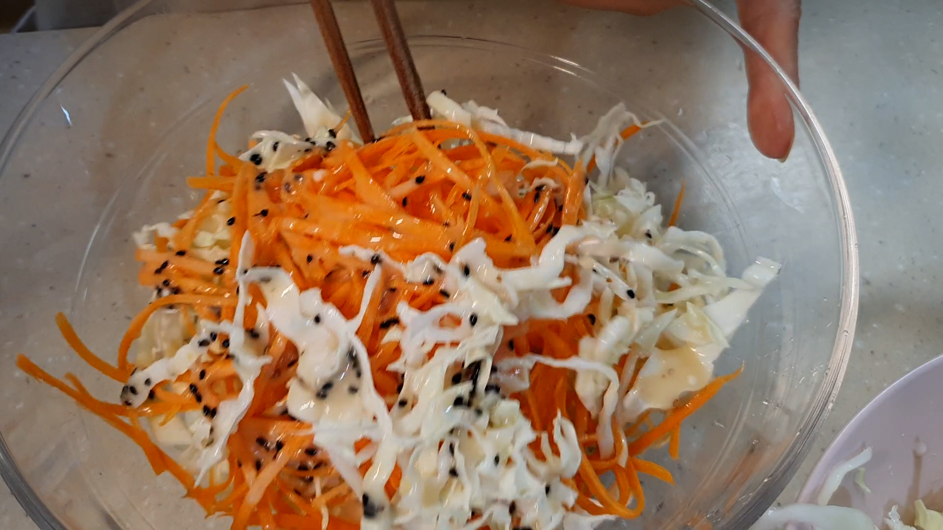 1. 양배추와 당근을 손질하여 채썰어 줍니다.