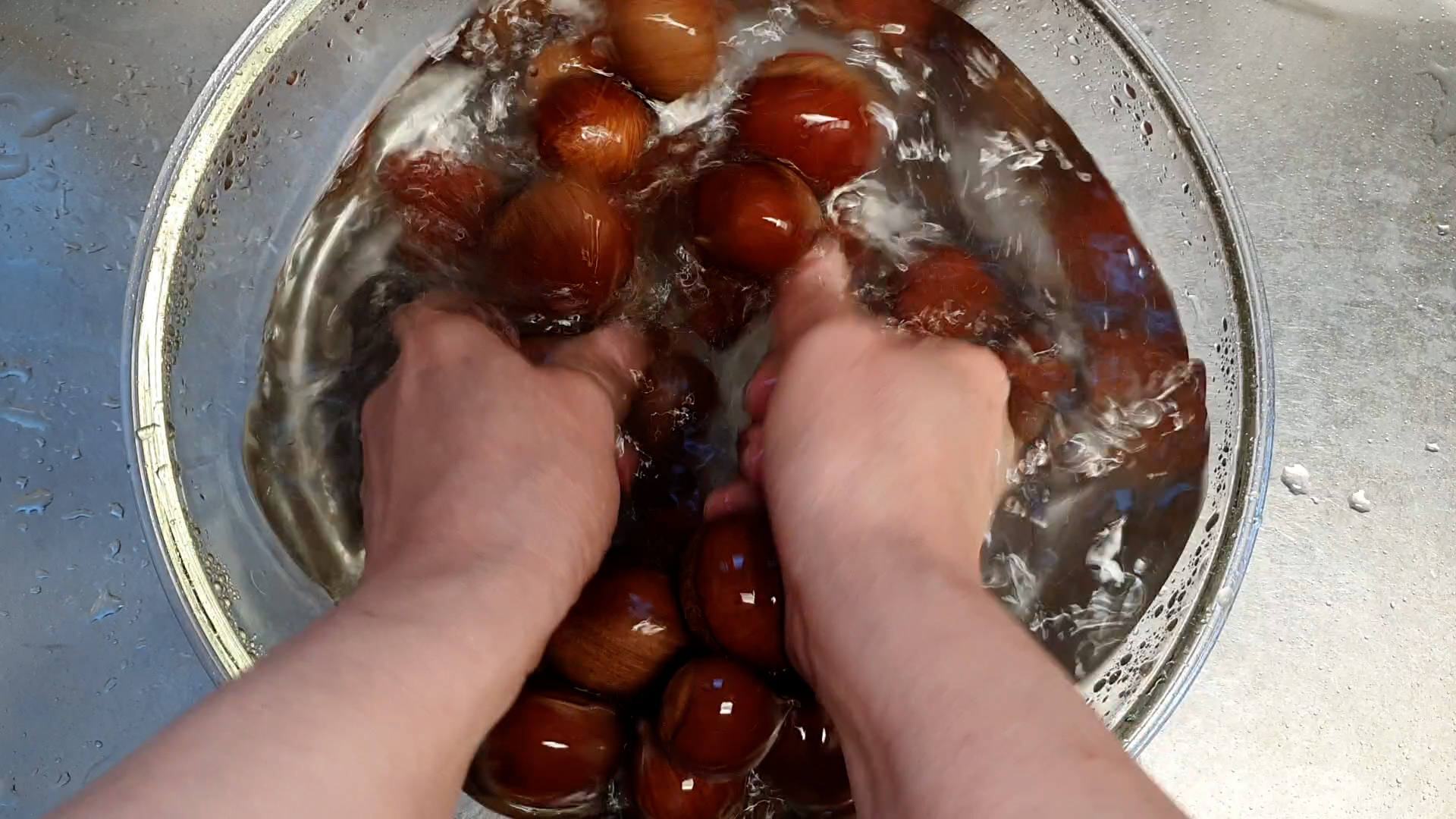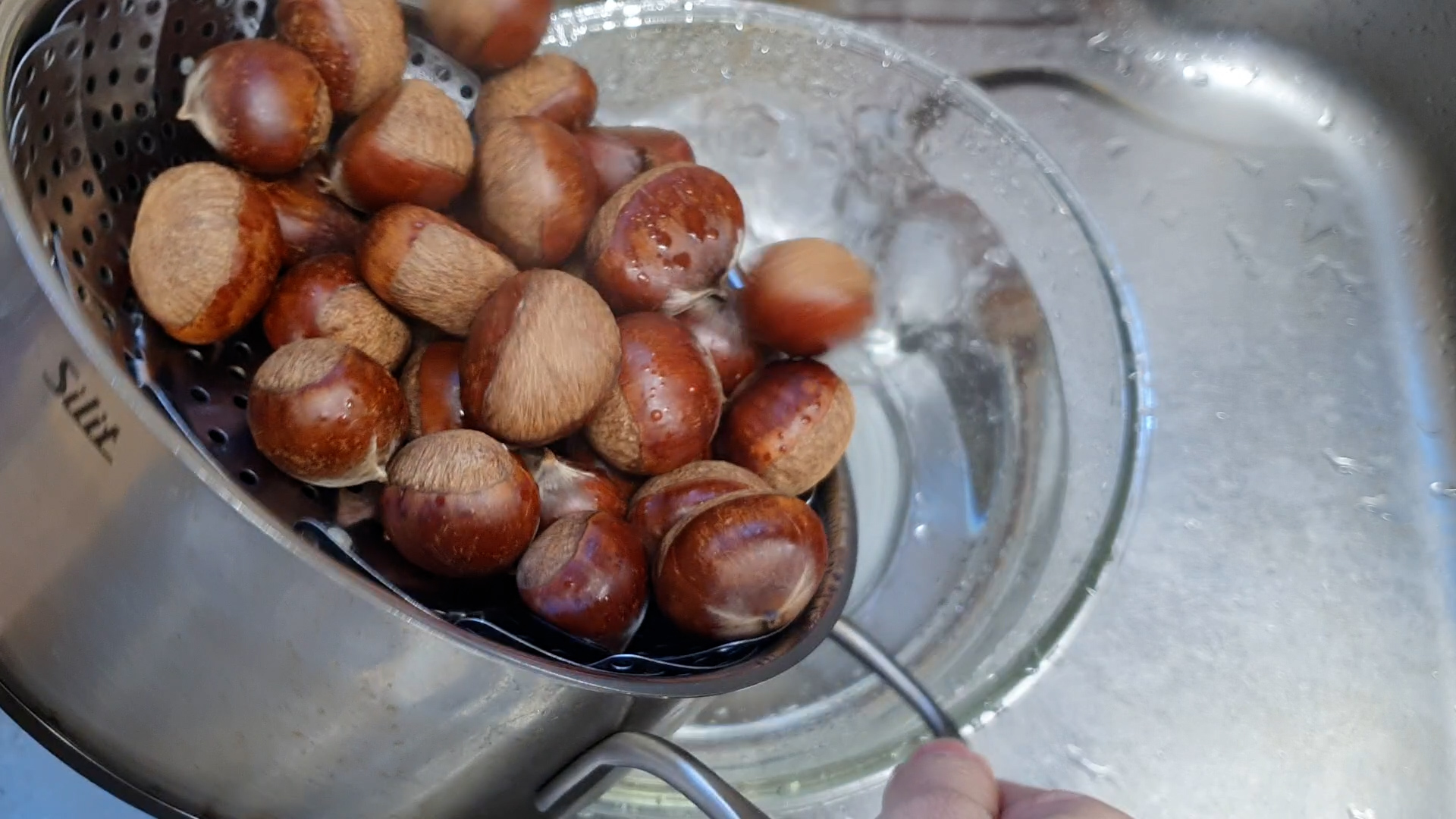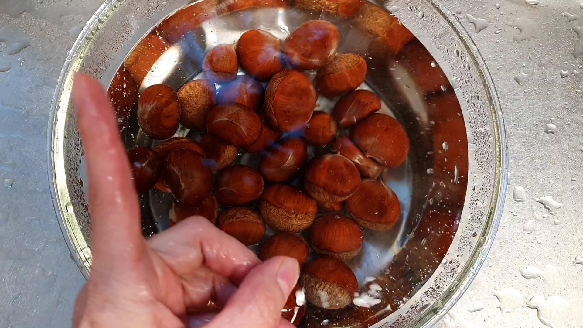 2. 씻은 밤을 물에 1시간 불리거나 뜨거운 물에 10분~20분 담가 준다.