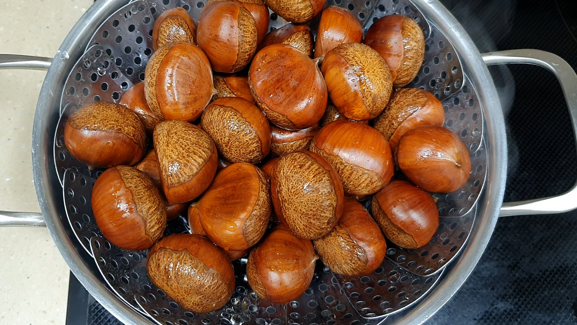 덜 찐(10분) 아삭한 식감의 밤도 좋아합니다.