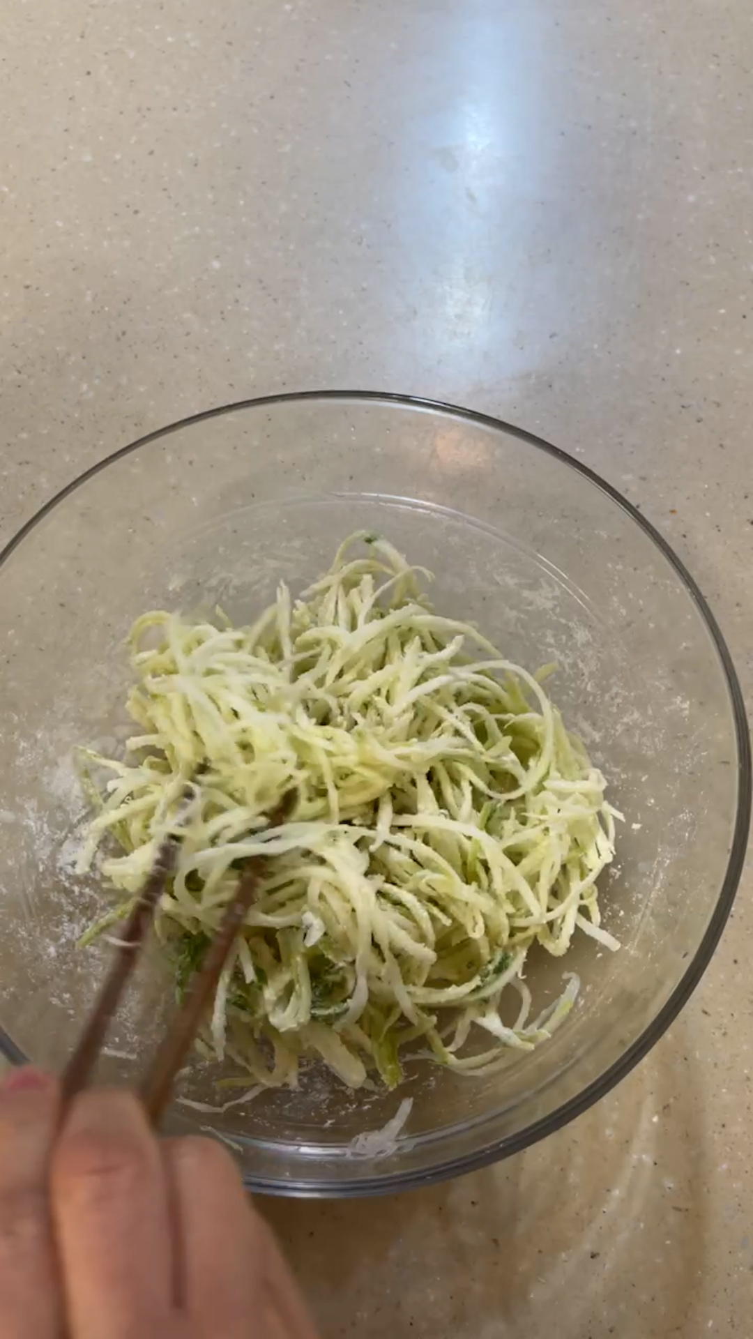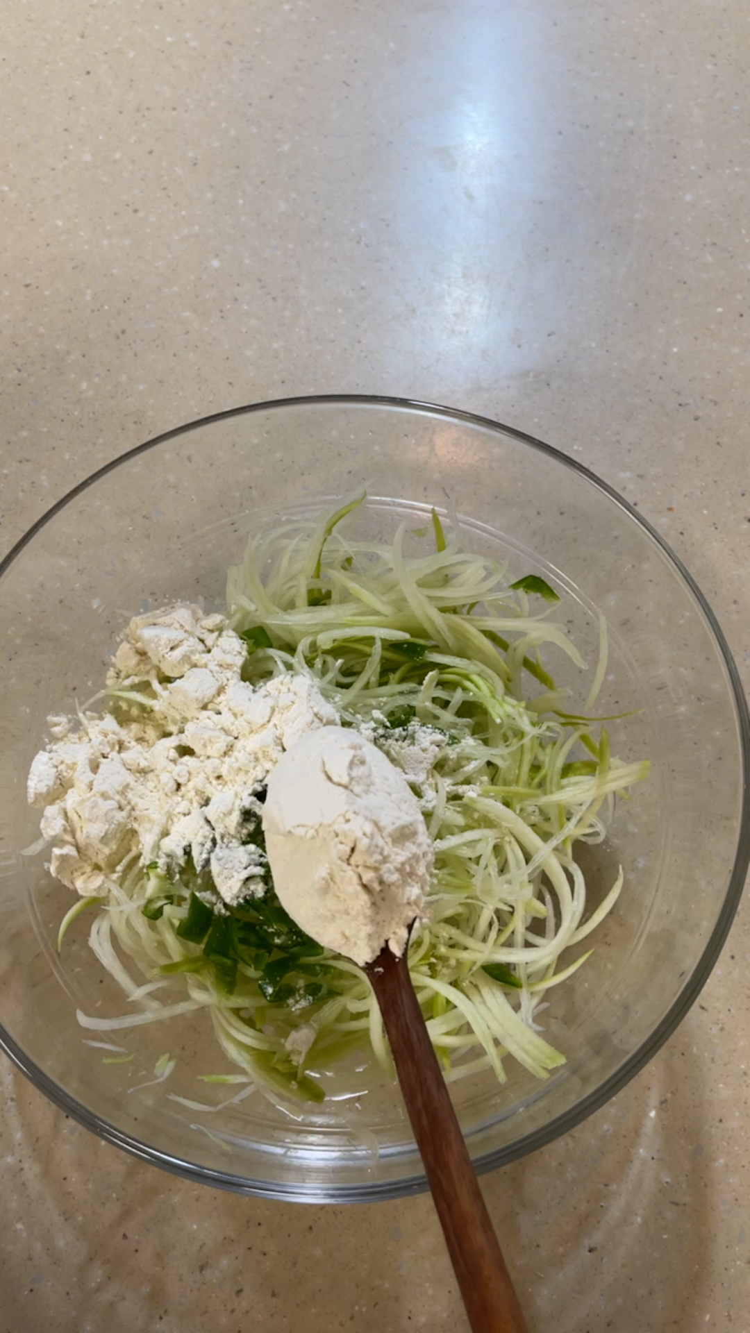 5.부침가루를 넣고 하얀가루 없게 잘 섞어준다.