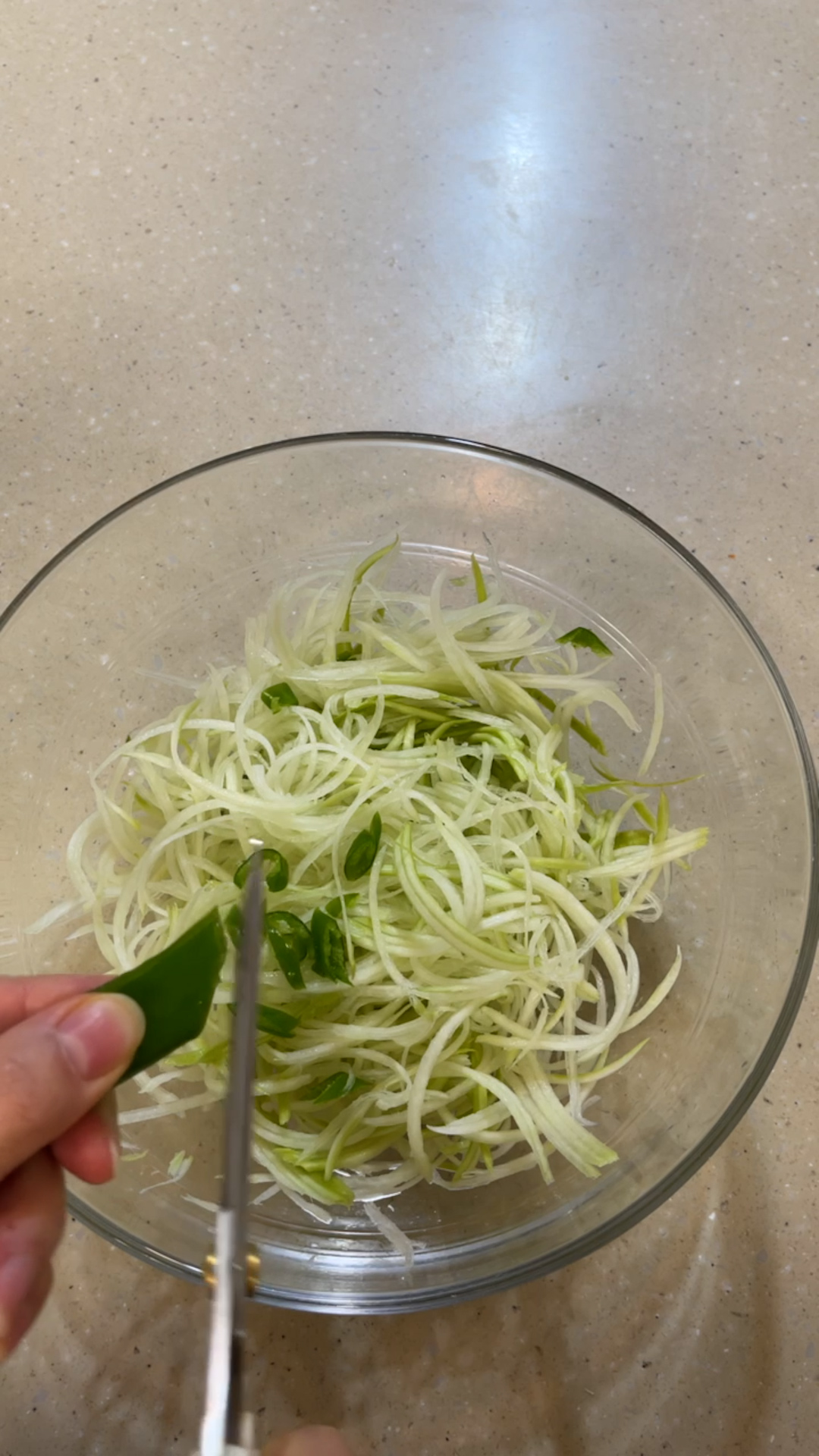4. 씨를 제거한 청양고추를 썰어 넣어준다.
